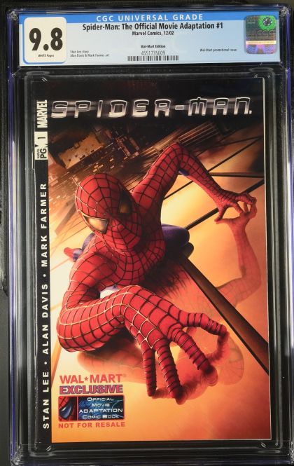 | Grader Notes | CGC Cert # 4551735009 Title Spider-Man: The Official Movie Adaptation Issue 1 Issue Date 12/02 Issue Year 2002 Publisher Marvel Comics Variant Wal-Mart Edition Grade 9.8 Page Quality WHITE Grade Date 2025-04-03 Label Category Universal Art Comments Stan Lee story Alan Davis & Mark Farmer art Key Comments Wal-Mart promotional issue. |