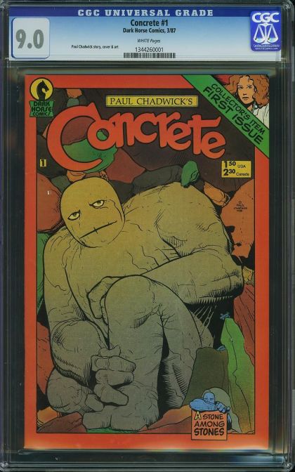 | Grader Notes | CGC 9.0 - 1344260001 Title Concrete Issue 1 Issue Date 3/87 Issue Year 1987 Publisher Dark Horse Comics Grade 9.0 Page Quality WHITE Grade Date 02/22/2016 Grade Category Modern Art Comments Paul Chadwick story, cover & art Grader Notes Unavailable |