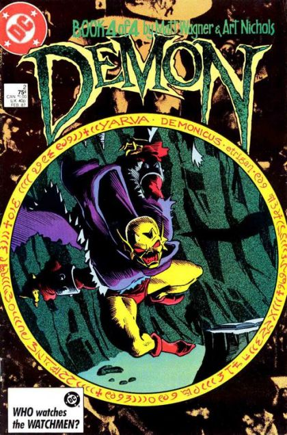 "Descension from Below!" Written by Matt Wagner. Art by Matt Wagner and Art Nichols. Jason Blood struggles with the "demon" that lies within. But when an ancient enemy kidnaps the woman in his life, the dark powers of Etrigan the Demon may be the only salvation for her lost soul. From the creator of MAGE and GRENDEL. 32 pages, FC. NOTE: The cover of this issue has a misprint saying "4 of 4." Cover price $0.75.