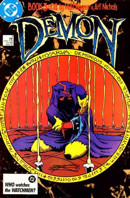 "Made He in His Likeness!" Written by Matt Wagner. Art by Matt Wagner and Art Nichols. In order to save Glenda's soul, Jason Blood will call the darkest powers. Plus, he learns what Etrigan wants and it may just be what he wants. And that scares him more than anything. 32 pages, FC. Cover price $0.75.
