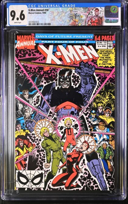 | Grader Notes | CGC Cert # 4333660002 Title X-Men Annual Issue 14 Issue Date 1990 Issue Year 1990 Publisher Marvel Comics Grade 9.6 Page Quality WHITE Grade Date 2023-10-06 Grade Category Modern Art Comments Chris Claremont story Arthur Adams & Mike Heike art Arthur Adams cover Key Comments Fantastic Four & Ahab appearance. Gambit cameo (predates Uncanny X-Men #266). Pinups by Kevin Nowlan & Michael Golden. Grader Notes foxing interior back cover |