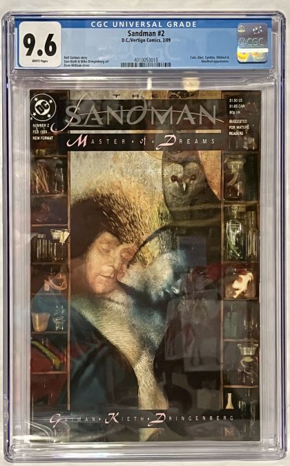 | Grader Notes | CGC Cert # 4010053010 Title Sandman Issue 2 Issue Date 2/89 Issue Year 1989 Publisher D.C./Vertigo Comics Grade 9.6 Page Quality WHITE Grade Date 11/09/2022 Grade Category Modern Art Comments Neil Gaiman story Sam Kieth & Mike Dringenberg art Dave McKean cover Key Comments Cain, Abel, Cynthia, Mildred & Mordred appearance. Grader Notes Unavailable |