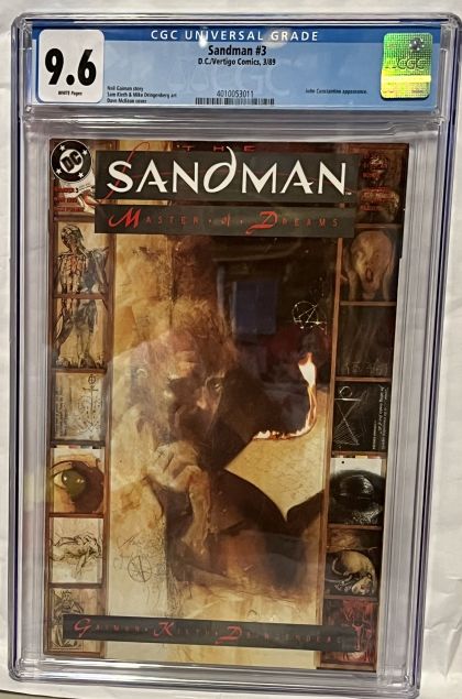 | Grader Notes | CGC Cert # 4010053011 Title Sandman Issue 3 Issue Date 3/89 Issue Year 1989 Publisher D.C./Vertigo Comics Grade 9.6 Page Quality WHITE Grade Date 11/09/2022 Grade Category Modern Art Comments Neil Gaiman story Sam Kieth & Mike Dringenberg art Dave McKean cover Key Comments John Constantine appearance. Grader Notes Unavailable |