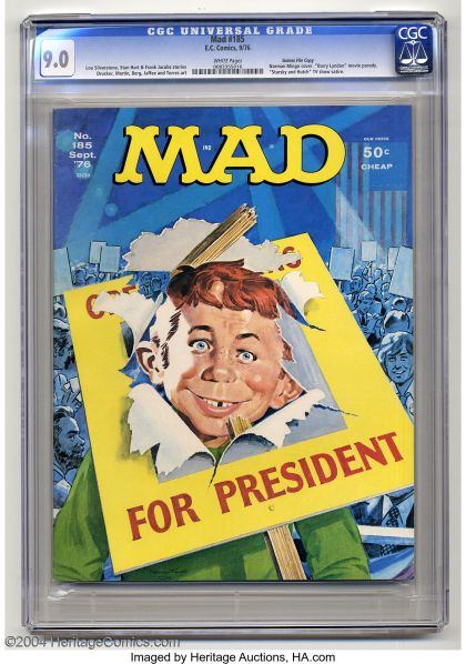 Mad #185 Gaines File Pedigree (EC, 1976) CGC VF/NM 9.0 White pages.