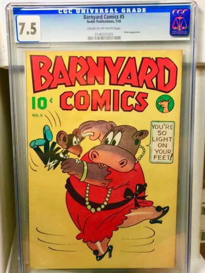CGC 7.5 Barnyard Comics #5 (Polo Magazines, 1945) Condition: VF. Unlisted Hitler appearance. Brown pages. Overstreet 2003 VF 8.0 value = $42.