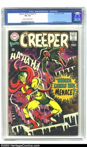 Beware the Creeper #1 (DC, 1968) CGC VF+ 8.5 Cream to off-white pages. First issue of Steve Ditko's bizarre creation: the Creeper! Classic Ditko cover. Overstreet 2003 VF 8.0 value = $73; VF/NM 9.0 value = $102.