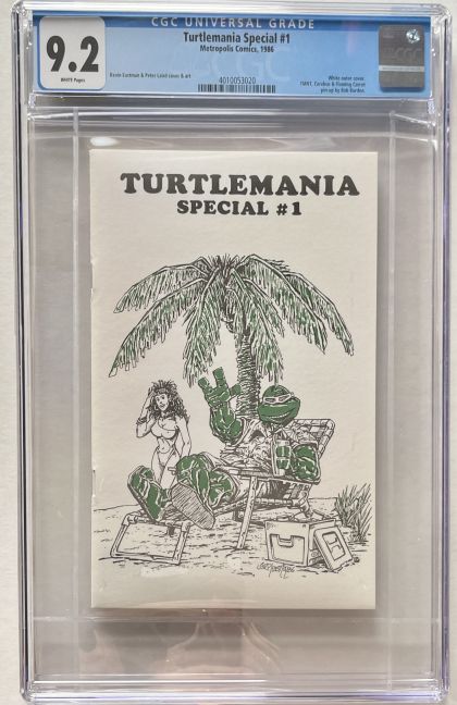 | Grader Notes | CGC Cert # 4010053020 Title Turtlemania Special Issue 1 Issue Date 1986 Issue Year 1986 Publisher Metropolis Comics Grade 9.2 Page Quality WHITE Grade Date 11/09/2022 Grade Category Modern Art Comments Kevin Eastman & Peter Laird cover & art Key Comments White outer cover. TMNT, Cerebus & Flaming Carrot pin-up by Bob Burden. Grader Notes Unavailable |