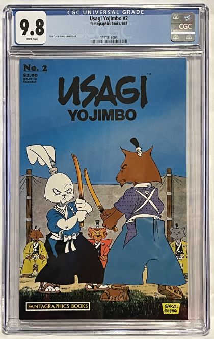 | Grader Notes | CGC Cert # 3927811006 Title Usagi Yojimbo Issue 2 Issue Date 9/87 Issue Year 1987 Publisher Fantagraphics Books Grade 9.8 Page Quality WHITE Grade Date 08/09/2022 Grade Category Modern Art Comments Stan Sakai story, cover & art Grader Notes Unavailable |