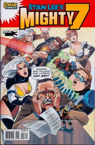 'A Monster Among Us!' Stan Lee Comics' Mighty 7 continues! Heroes and villains and lasers! Oh my! The all-new superhero property from the co-creator of Spider-Man, the X-Men, and more, takes a dramatic turn as a frightening new villain finally makes his destructive debut! As our heroes continue to adjust to their new lives on Earth, Stan must adjust to playing host to the unruly band of aliens! Can the greatest comic book creator ever manage to spare Los Angeles from complete chaos?