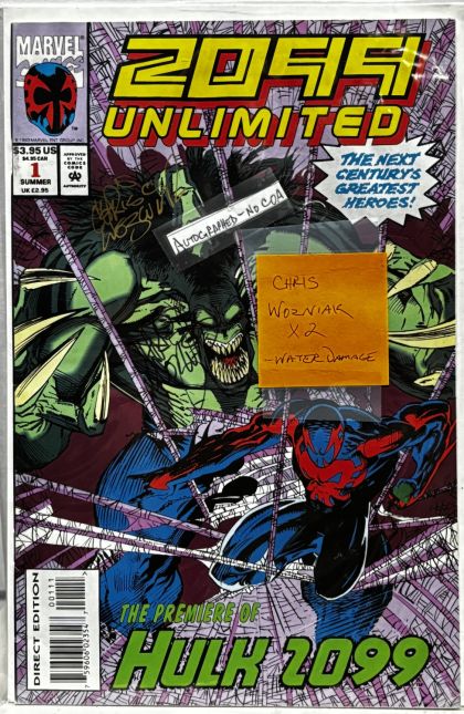 | Key | Minor: 1st app. of Hulk 2099 - Signed Edition NO COA - Signed by Chris Wozniak (twice) - water damage top right |