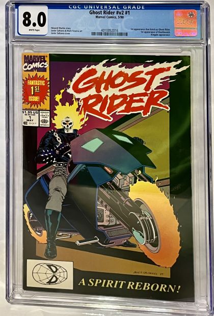 | Grader Notes | CGC Cert # 4010052016 Title Ghost Rider Issue v2 #1 Issue Date 5/90 Issue Year 1990 Publisher Marvel Comics Grade 8.0 Page Quality WHITE Grade Date 11/22/2022 Grade Category Modern Art Comments Howard Mackie story Javier Saltares & Mark Texeira art Javier Saltares cover Key Comments 1st appearance Dan Ketch as Ghost Rider. 1st appearance of Deathwatch. Kingpin appearance. Grader Notes moderate fingerprints on cover |