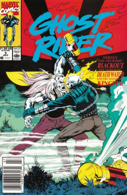 The quest for the canisters comes to an end and their mysterious contents revealed. Deathwatch and Blackout attack a police station where two of the canisters are being held and Paulie, another of the Cypress Pool Jokers involve in the theft of the canisters, is being questioned by police. Paulie and the canisters are taken to the Cypress Hills cemetery where the ordeal began. The Kingpinâs men arrive and quickly overwhelm Deathwatch and his men. Deathwatch gives up the canisters but Blackout has other plans. Ghost Rider again battles Blackout to prevent the contents of the canister being exposed. Blackout is again unable to defeat Ghost Rider and escapes with the scars of the battle, vowing vengeance.
