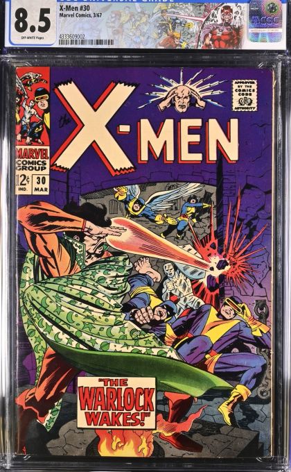| Grader Notes | CGC Cert # 4333609002 Title X-Men Issue 30 Issue Date 3/67 Issue Year 1967 Publisher Marvel Comics Grade 8.5 Page Quality OFF-WHITE Grade Date 10/16/2023 Grade Category Universal Art Comments Roy Thomas story Jack Sparling and John Tartaglione art Jack Kirby cover Grader Notes light creasing to cover light spine stress lines to cover small tear left center of very light cover tanning |