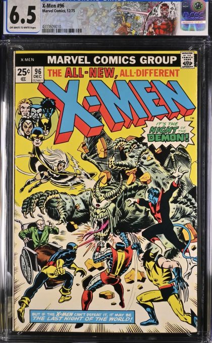 | Grader Notes | CGC Cert # 4333609010 Title X-Men Issue 96 Issue Date 12/75 Issue Year 1975 Publisher Marvel Comics Grade 6.5 Page Quality OFF-WHITE TO WHITE Grade Category Modern Art Comments Chris Claremont story Dave Cockrum & Sam Grainger art Sal Buscema & Dave Cockrum cover Key Comments 1st appearance of Moira MacTaggert. Grader Notes moderate creasing to cover light spine stress lines to cover small tear with crease right top of front cover |