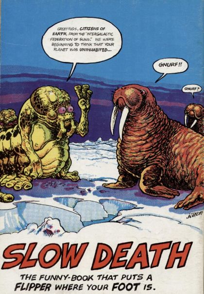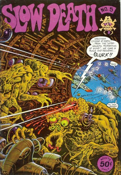 Underground comix anthology focusing on themes of science fiction and horror. Stories and art by Rand Holmes, Charles Dallas (of Psychotic Adventures), Greg Irons, Tom Veitch and Richard Corben, plus short pieces by Dave Sheridan and Jack Jackson. Black and white; 32 pages. Cover by Holmes. Cover price $0.50. ADULTS ONLY!