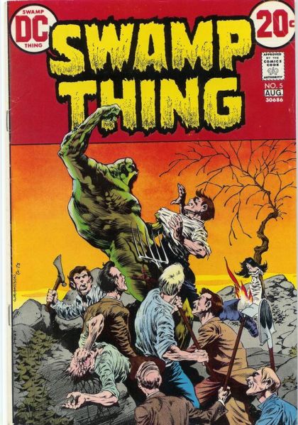 "The Last of the Ravenwind Witches." Swamp Thing stows away on a ship, befriends a woman and her brother in Divinity, Main, and learns that they have been accused of being witches. Swamp Thing discovers that he can re-grow limbs. Script by Len Wein, art and cover by Berni Wrightson. Cover price $0.20.