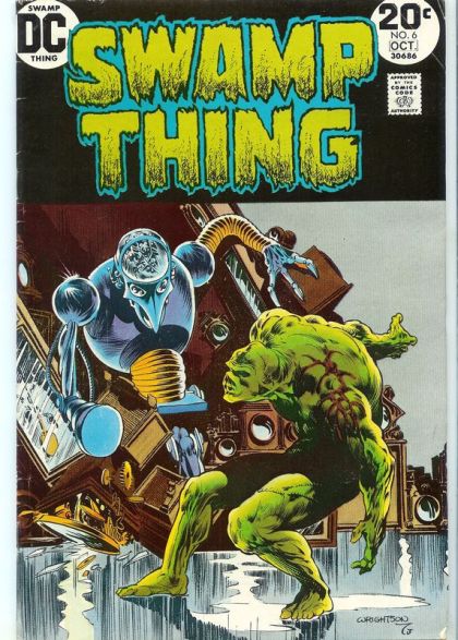 "A Clockwork Horror." Swamp Thing, Matt Cable and Abby Arcane go to Burgess Town, where humanoid robots (including dupes of Alec and Linda Holland) reside. Script by Len Wein, art and cover by Berni Wrightson. Cover price $0.20.