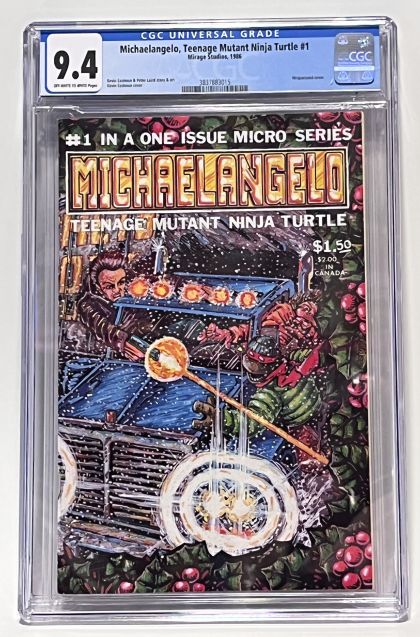 | Grader Notes | CGC Cert # 3837883015 Title Michaelangelo, Teenage Mutant Ninja Turtle Issue 1 Issue Date 1986 Issue Year 1986 Publisher Mirage Studios Grade 9.4 Page Quality OFF-WHITE TO WHITE Grade Date 03/31/2022 Grade Category Modern Art Comments Kevin Eastman & Peter Laird story & art Kevin Eastman cover Key Comments Wraparound cover. Grader Notes Unavailable |