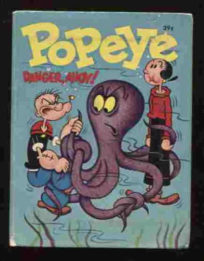 Popeye Danger Ahoy! (1936 Whitman BLB) #2034, hardcover, color illustrations (Big Little Book 1968) is a Big Little Book published by Whitman Publishing, Co. 250 pages, color pictures with text, 3.5-in. x 4.75-in., . Cover price $0.39.