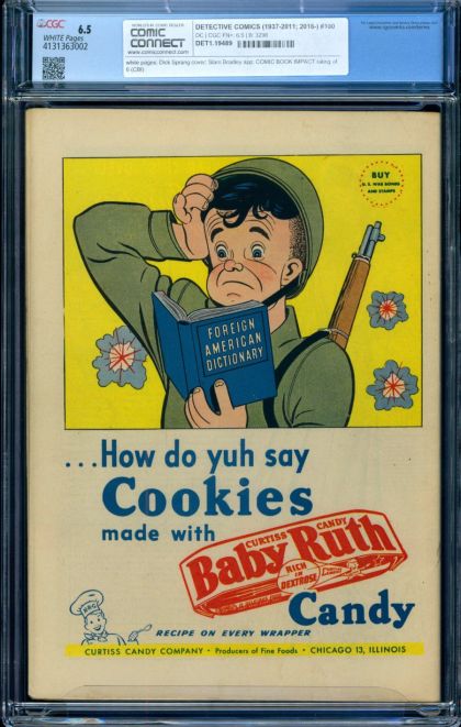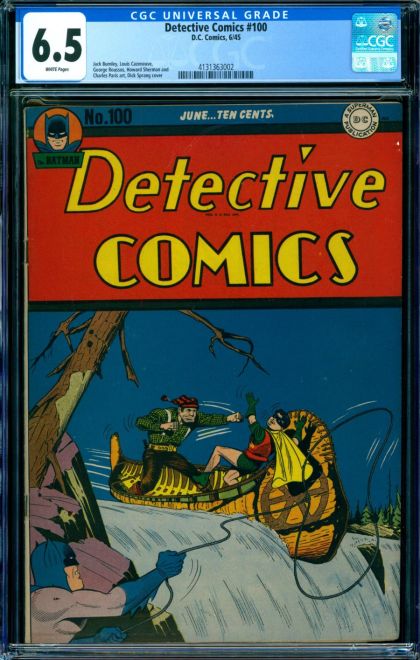 | Grader Notes | CGC Cert # 4131363002 Title Detective Comics Issue 100 Issue Date 6/45 Issue Year 1945 Publisher D.C. Comics Grade 6.5 Page Quality WHITE Grade Date 10/26/2022 Grade Category Universal Art Comments Jack Burnley, Louis Cazeneuve, George Roussos, Howard Sherman and Charles Paris art, Dick Sprang cover Grader Notes light, multiple stain back cover very small tear left top of spine very small, multiple staple tear |