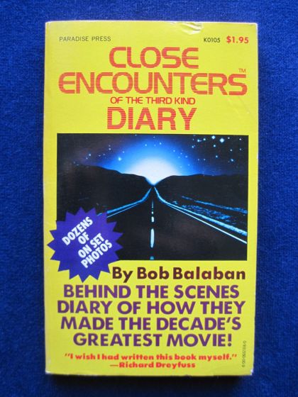 CLOSE ENCOUNTERS OF THE THIRD KIND - THE FILM]. BALABAN, BOB. Close Encounters of the Third Kind Diary. Introduction by Steven Spielberg. New York: Paradise Books, 1978. First Edition. Paperback original. A superb behind the scenes diary written by actor Bob Balaban who played the interpreter for Francois Truffaut in the Steven Spielberg film. Not written with the intention of the publication, Balaban’s candid resulting effort was rushed into print to coincide with the release of the now classic film. Near fine slightly used copy in printed wrappers. Illustrated. Recommended reading.