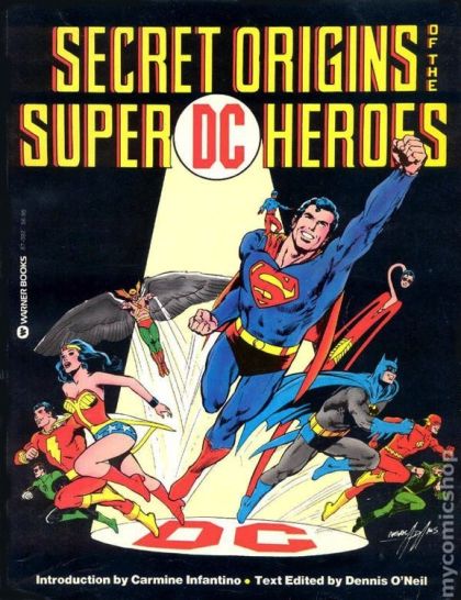 1st printing. Written by Dennis O'Neil. Content information compled by Tyler Swagger. Cover by Neal Adams. Introduction by Carmine Infantino. Featuring the history and creation of DC characters herein featured. Origins included in this book: Superman: Action Comics #1 and Superman Metropolis Edition from 1973; Batman: Detective #33 and Batman #47; Flash: Flash #1 and howcase #4; Wonder Woman: Wonder Woman #1 and #20; Green Lantern: All-American #16 and Showcase #22; Green Arrow: More Fun #89 and Adventure #256; Hawkman: Flash #1 and Brave & Bold #34; The Atom: All-American #19 and Showcase #34; Captain Marvel: Whiz #1; Plastic Man: Police #1. Softcover, 8 1/2-in. x 11-in., 240 pages, full color. Cover price $6.95.
