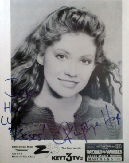 Khrystyne Haje was born on December 21, 1968 in Santa Clara, California, USA as Khrystyne Kamil Haje. She is an actress, known for Head of the Class (1986), Cyborg 3: The Recycler (1994) and Scanner Cop II (1995). See full bio »