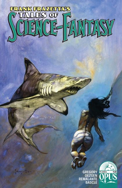 "The quarterly anthology series returns, with each issue focusing on another masterpiece by the godfather of fantasy art, Frank Frazetta. In this story, inspired by the painting "Requiem for a Shark," writer Aaron Gregory (Godzilla: Rage Across Time) and German artist Sedat Oezgen chronicle a family of villagers who find themselves captives on a ship of cannibal pirates. Not for the squeamish, mateys!"