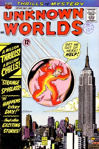 "Strange Spyglass" (script by Richard Hughes as "Kurato Osaki," art by Edd Ashe), "It Happens Every Day" (script by Hughes as "Lafcadio Lee," art by Pete Costanza), and "Problem Prisoner" (art by Curt Carpenter, art by Bill Walsh). One-page "The Shell" (art by Paul Reinmen). Kurt Schaffenberger cover. Cover price $0.12.