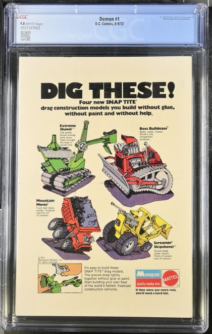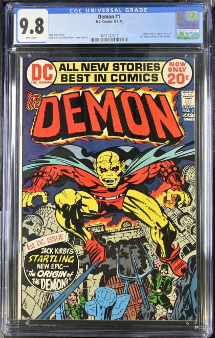| Grader Notes | CGC Cert # 4551147002 Title Demon Issue 1 Issue Date 8-9/72 Issue Year 1972 Publisher D.C. Comics Grade 9.8 Page Quality WHITE Grade Date 2025-02-03 Grade Category Universal Art Comments Jack Kirby story Jack Kirby and Mike Royer cover and art Key Comments Origin and 1st appearance of the Demon (Etrigan) and Randu. |