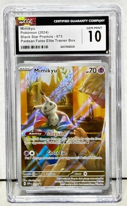 | Grader Notes | Mimikyu Pokémon 2024 English Black Star Promos - Scarlet & Violet SVP EN 075 Paldean Fates Elite Trainer Box (Holo) |
