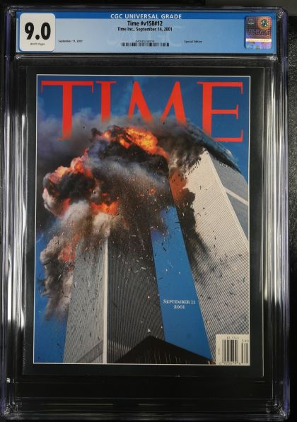 | Grader Notes | CGC Cert # 4424524005 Title Time Issue v158#12 Issue Date September 14, 2001 Issue Year 2001 Publisher Time Inc. Grade 9.0 Page Quality WHITE Grade Date 07/22/2024 Grade Category Modern Art Comments September 11, 2001 Key Comments Special Edition Grader Notes light spine stress lines to cover very light fingerprints on cover |