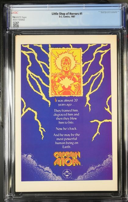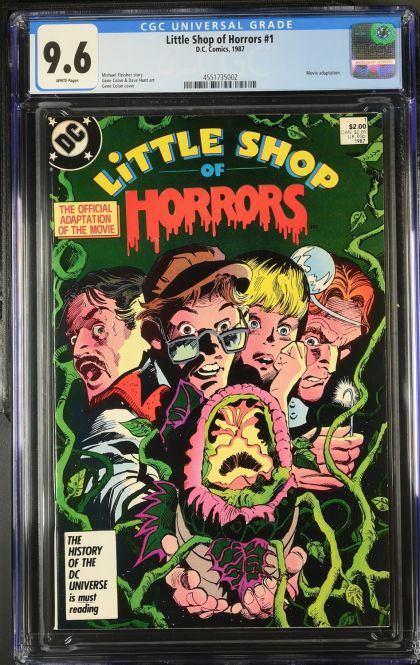 | Grader Notes | CGC Cert # 4551735002 Title Little Shop of Horrors Issue 1 Issue Date 1987 Issue Year 1987 Publisher D.C. Comics Grade 9.6 Page Quality WHITE Grade Date 2025-04-03 Grade Category Modern Art Comments Michael Fleisher story Gene Colan & Dave Hunt art Gene Colan cover Key Comments Movie adaptation. Grader Notes spine stress lines cover |