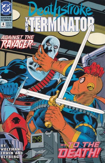 Full Cycle: Part 4 of 4. "...Bombs Bursting in Air!" Story by Marv Wolfman. Art by Steve Erwin and Will Blyberg. The Terminator faces off with the Ravager in a duel to the death! If Deathstroke fails Washington D.C. is doomed! Who is this mysterious killer who has taken up the moniker of Slade's fallen son? The answer to that question is not one even Deathstroke saw coming. NOTE: 1st appearance of the new Vigilante (shadowy cameo only). Cover price $1.75.