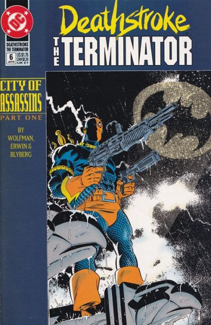 City of Assassins: Part 1 of 4. "Revelations and Revolutions!" Batman cameo. Story by Marv Wolfman. Art by Steve Erwin and Will Blyberg. Cover by Mike Zeck. Someone is assassinating mob bosses in Gotham City. Deathstroke intends to find out who. The only problem is Gotham is the home of the Dark Knight, and he doesn't take kindly to a wanted murderer running around his city. Cover price $1.75.