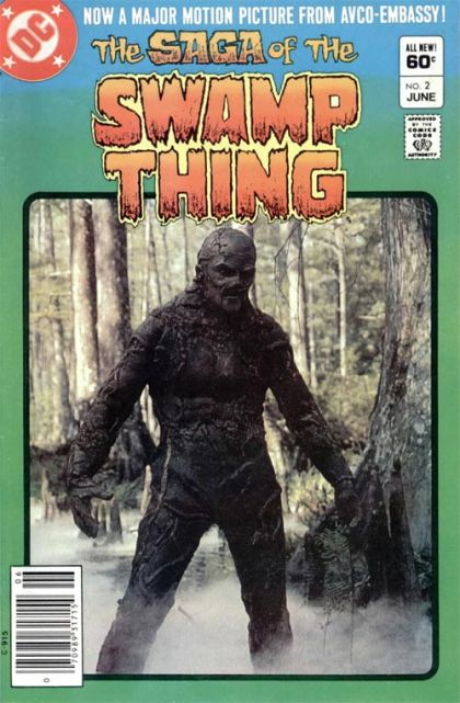 Photo Cover - "Something to Live For!" Written by Martin Pasko. Art by Tom Yeates. When the creature once known as Alec Holland and his mute companion Casey are attacked by the locals and accused of being a witch and her demon pet, the two decide it's time to head on down the road. Meanwhile, Swamp Thing's enemies conspire from the shadows. Includes the back-up tale "Soul on Fire!" Starring The Phantom Stranger. Written by Mike W. Barr. Art by Dan Spiegle. 32 pages, FC. NOTE: This issues features a photo cover of Dick Durock as the Swamp Thing from the 1982 movie co-starring Adrienne Barbeau. Cover price $0.60.
