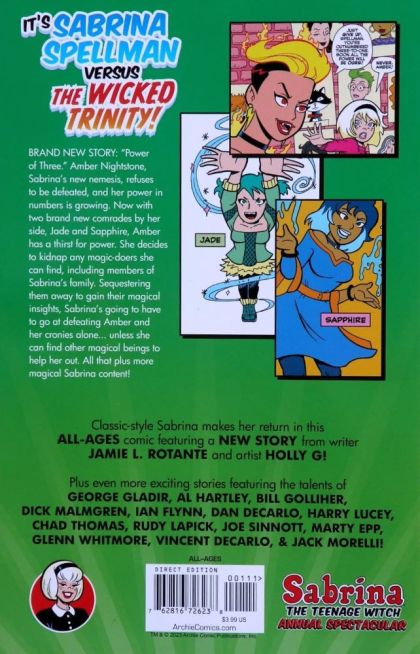 BRAND NEW STORY: 'Power of Three.' Amber Nightstone, Sabrina's new nemesis, refuses to be defeated, and her power in numbers is growing. Now with two brand new comrades by her side, Jade and Sapphire, Amber has a thirst for power. She decides to kidnap any magic-doers she can find, including members of Sabrina's family. Sequestering them away to gain their magical insights, Sabrina's going to have to go at defeating Amber and her cronies alone unless she can find other magical beings to help her out. All that plus more magical Sabrina content!
