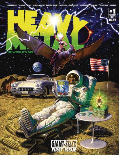 Heavy Metal magazine is back! Heavier than ever! This relaunch brings the world's greatest illustrated magazine back to the forefront of comics. One of the magazine's original legends, Enki Bilal returns with his acclaimed BUG series. Burton & Cyb returns by Antonio Segura and Jose Ortiz, as well as Vicente Segrelles' The Mercenary. HM will debut Janevsky's cult sci-fi heroine, Sixella. Guido Crepax' classic character Valentina returns by Sergio Gerasi. Writing duo Leah Moore and John Reppion will pen Taarna's ongoing adventures, with art from Anna Morozova. Also featuring: Cold Dead War (B-17) by Craig Wilson, Grimaldi by Keron Grant, and Legends of Taarna by Joseph Michael Linsner. Fernando Dagnino brings Lester, That Old Feeling. The return of classic strips The Bus by Paul Kirchner and June 2050 by John Workman. Michael Conrad will pen a top-secret saga TBA. Visionary creators David Quinn and Tim Vigil deliver Transcendestiny.