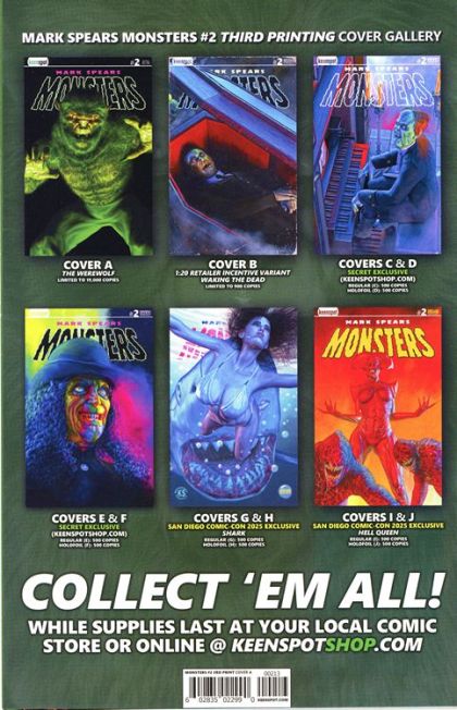 From the hit trading card series Mark Spears Monsters, superstar cover artist Mark Spears (Spawn, DC, Power Rangers) has created, written, and illustrated this terrifying tale. In this spine-chilling second issue, ruthless terrorist group The Overmen launch a daring infiltration of a heavily-guarded military complex, retrieving an ancient and powerful artifact known as the Witch Stone. Amidst the chaos, the Monster Slayer seeks a meeting with an old adversary, determined to uncover the fate of his missing friend.