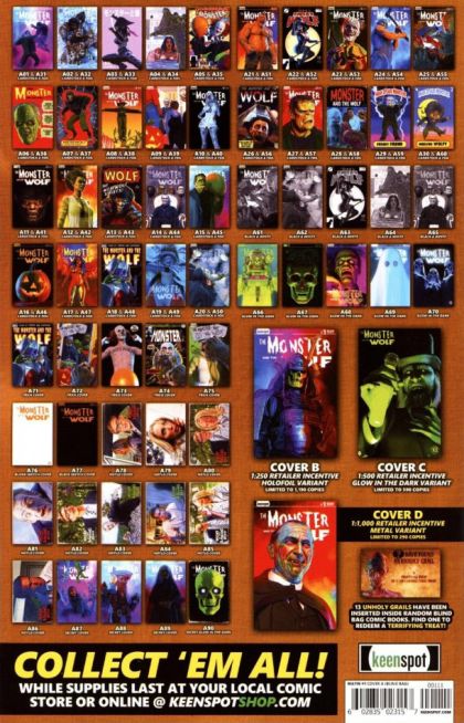 From the creator of the hit series Mark Spears Monsters comes this new prequel mini-series written and illustrated by Mark Spears! In a desperate attempt to find a cure to the werewolf curse that haunts him, Clint Abbott's journey leads him to the bitter cold of the Arctic. Through the snow and ice, he senses something is stalking him... but not everything is as it seems. NOTE: Cover A is a BLIND BAG randomly packed with one of more than SEVENTY FIVE exclusive cover variants by Mark Spears, many of them incredibly rare! (This is a Keenspot publication.) Cover A1 Cardstock - 1:38, Cover A2-A30 Cardstock - 1:29, Cover A31-A60 Chrome Foil - 1:420, Cover A61-A65 Black and White - 1:1000, Cover A66-A70 Glow in Dark - 1:1000, Cover A71-A75 Trick Cover - 1:46