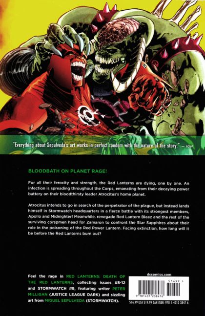 - In this second New 52 volume, Atrocitus, the creator of the Red Lanterns, is haunted by his past. Abysmus has been freed from his imprisonment and intends to destroy not only the Red Lanterns, but all life. Then, Atrocitus must face a civil war led by Bleez. Did Bleez free Abysmus in an effort to topple Atrocitus? And is the new human Red Lantern Jack Moore the key to stopping Abysmus? - Collects RED LANTERNS #8-12 and STORMWATCH #9.