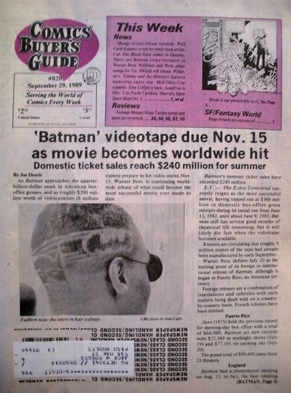 September 29, 1989. 'Batman' videotape due Nov. 15 as movie becomes worldwide hit - domestic ticket sales reach $240 million for summer. Cover price $2.25.