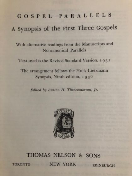 The arrangement follows the Huck-Lietmann synopsis, ninth edition, 1936