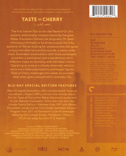 A middle-aged Tehranian man, Mr. Badii is intent on killing himself and seeks someone to bury him after his demise. Driving around the city, the seemingly well-to-do Badii meets with numerous people, including a Muslim student, asking them to take on the job, but initially he has little luck. Eventually, Badii finds a man who is up for the task because he needs the money, but his new associate soon tries to talk him out of committing suicide.