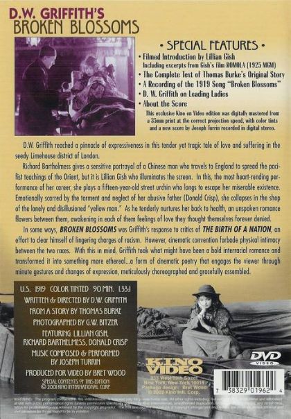 Broken Blossoms is an American silent film from director D. W. Griffith. This melodrama tells the love story of an abused English woman and a Chinese Buddhist in a time when London was a brutal and harsh place to live.