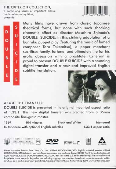 | Writer | Monzaemon Chikamatsu, Masahiro Shinoda, Tôru Takemitsu, Taeko Tomioka | |