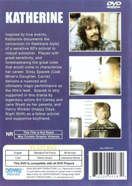 A harrowing look at the 60s and early 70s through the eyes of Katherine Alman, a wealthy debutante who slowly, but inexorably spirals down into a fight for the causes that shook a nation, leading a path to the underground life. Written by Miguel Cane