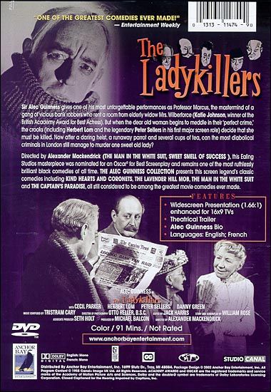 Meet "The Unholy Five"...The Most Befuddled Set of Assorted Thugs That Ever Fouled Up a Million Dollar Bank Robbery!! A gang of five diverse oddball criminal types rent a two room apartment in an isolated house on a London cul-de-sac from an octogenarian widow with three pet parrots. The group's mastermind, Professor Marcus, tells her a cover story that they are members of an amateur string quintet and would like to use the rooms to hone their musical skills. In reality, they are plotting to rob a bank and plan to use Mrs. Wilberforce's naiveté and her Victorian sensibilities to their advantage
