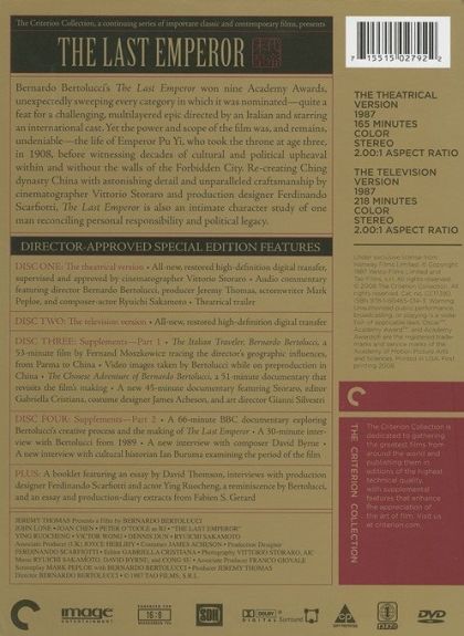 | Writer | Enzo Ungari, Mark Peploe, Bernardo Bertolucci, Puyi | |