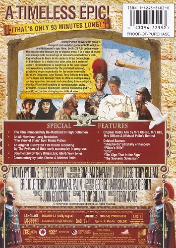 A brilliant parody from the British comedy group Monty Python about the history of (not Jesus but the boy born right next door to The Manger, Brian). A Terry Jones directed film from 1979 that has since gained cult status. What many fans don't know is that this movie might never have happened if not for the financial assistance of George Harrison (of The Beatles).